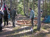Christoph hatte eine Überraschung für uns, er hatte allen einen Bierhumpen aus einem Birkenstamm gefertigt. Jeder erhielt einen original Christoph-Birken-Humpen, und man sieht nur strahlende Gesichter.